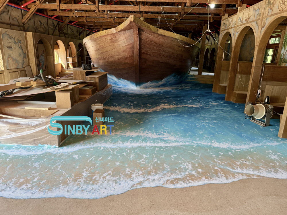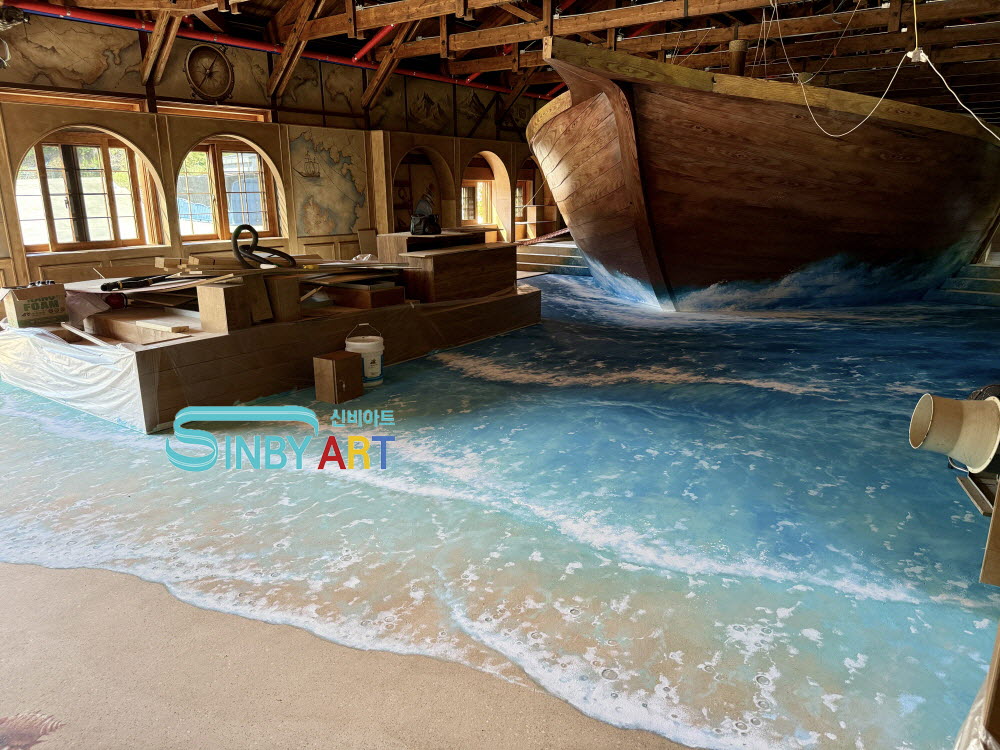 순수 핸드 페인팅으로 제작되는 트릭아트 벽화는