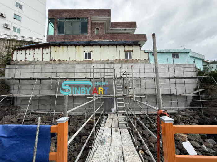 곽암 미역바위 바다 풍경 옹벽 벽화