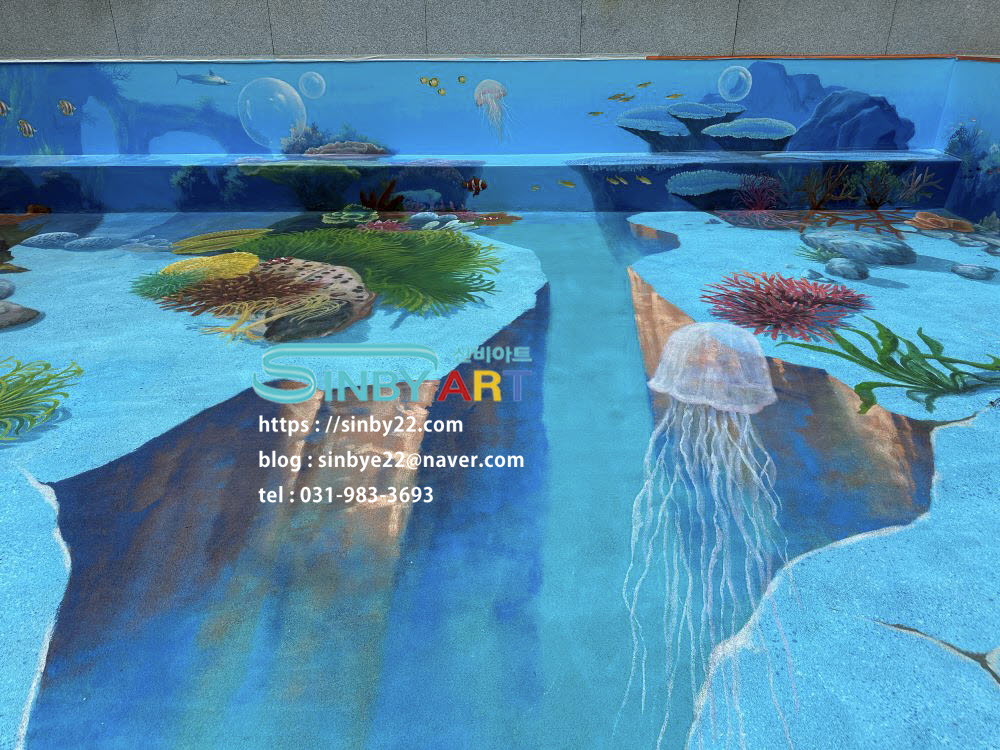 순수 핸드 페인팅으로 제작되는 트릭아트 벽화는